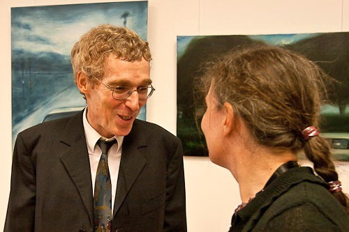 A tárlatot dr. Vondervisztné Kapor Ágnes nyitotta meg új, szerteágazó gondolatokat, kérdéseket felvetve a művész képeinek értelmezése kapcsán. A megnyitót megtisztelte jelenlétével a gimnáziumban végzett festő is.