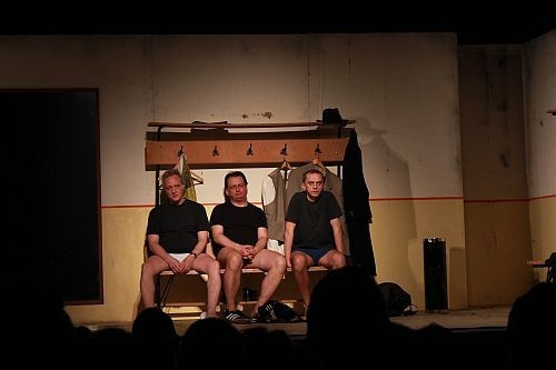 Vígjáték a magyar fociról – áll a Tavaszi Fesztivál plakátján, ez azonban félrevezető. Mint ahogyan láthatóan félre is vezette azt a busznyi középiskolás korú fiút, akiket sejthetően a foci hívószava miatt hoztak el. Bezselézett hajukkal és legtrendibb lilában és rózsaszínben játszó ingeikkel hatalmas távolságra voltak a RETRO Színház színpadán felépített koszos és kopott öltöző lepukkant alakjaitól. (A fiúknál csak az időről időre felcsattanó faszomok, és a fehér fecskealsójára rámarkoló partjelző Sűrített tej van, adj pár percet poénja ült.)