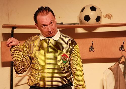 A Lipics Zsolt által megformált bíró figurája kissé halványabbra sikeredett, mint más rendezésekben (például a Jókai Színház, a Thália vagy a Budapesti Kamaraszínházéban). Lacikám kabátja, öltönye, felszerelése ugyan így is fényévnyi távolságra van a partjelzők szakadt ruháitól, mégsem demonstrálja azt a minőségi klassziskülönbséget, amit kéne. Kissé puhány alakja és egoizmusa ugyan komikus, de árnyaltabb a kép, ha a siker a minőségi öltönyben, órában, táskában is megmutatkozik, önteltségéhez pedig egy valóban vonzó külső párosul. Túlzott motiváltsága – az a mániákus elszántság, hogy munkahelyi sikerein túl a FIFA bíróság is összejöjjön – erős kontrasztot képez a két kilátástalan sorssal, mégsem vált ki érzelmeket. Nem tudjuk utálni, mikor még magabiztos és pökhendi, és valahogy szánni sem a meccs kudarca után. Szappan utálata is sokkal átélhetőbb, ha Lacikámban látjuk azt az embert, akire titkon mi is féltékenyek tudunk lenni.
