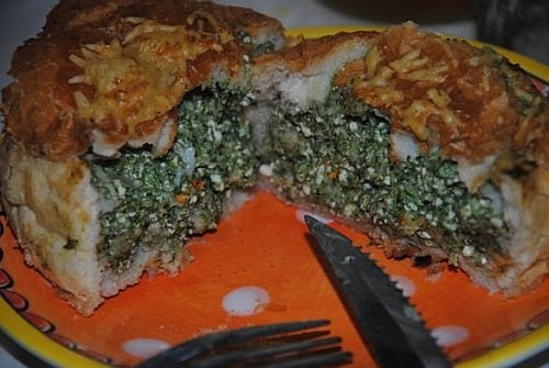 Egy doboz fagyasztott spenótot felengedünk, levét gondosan lecsöpögtetjük. Ha már nem tocsog, a tűzhelyünket előmelegítjük 160 fokra. Hozzáadunk ½ kg áttört túrót (én csak villával szoktam törni, szeretem, ha kicsit darabos), 2 dl tejfölt (amibe elkevertünk egy evőkanál burgonyakeményítőt – ez opcionális, de biztosabb a siker), egy komolyabb csomó kaprot apróra vágva (vagy két evőkanál szárított kaprot), 3–4 tojássárgáját (ugye, hogy mekkora a tojás…), és a zsemlék apróra szaggatott belét. Okosan sózzuk. Ne legyen sótlan! Felverjük a tojásfehérjéket, hozzáforgatjuk.