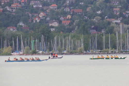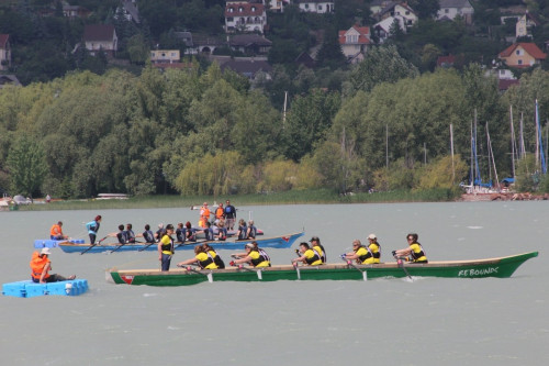 Az első futamban a veszprémi senior nők húztak erősebben, megszerezve ezzel a veszprémiek győzelmét. Erős szembeszélben és nagy hullámok közepette repülő rajttal indult a két női hajó, és szoros küzdelemben sikerült a veszprémieknek a hátuk mögött hagyniuk a keszthelyi hajót. Az időjárásra tekintettel a szervezők lerövidítették a futamok indulása közötti időt, így egy pörgős, eseménydús evezős verseny alakult ki a Balaton partja mentén. A vízen hatalmas összecsapások következtek a két kampusz evezősei között, és bár a veszprémiek több futamban is szert tettek az első helyre, ezek a pozíciószerzések csak átmenetinek bizonyultak, mert mindannyiszor a keszthelyiek zöld hajója szelte át elsőként a hullámokat a célt jelentő bóják között. A nap végére kialakult a két versengő fél közötti 3:1-es eredmény a keszthelyi kampusz javára.