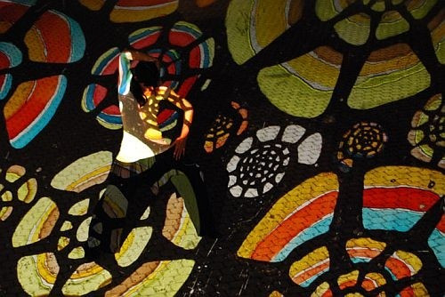 Ezzel párhuzamosan Szepesi Imre maga által válogatott jazz zenére vetítette be a könyvtár belső udvarát: a falakat, a földet egyaránt, miközben Horváth Csilla adott elő tánc improvizációkat.
