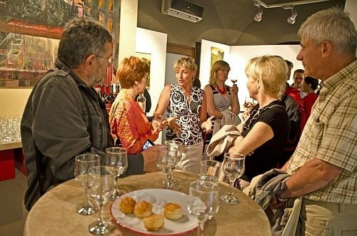 A fehér-, majd rozé és végül vörösborok bemutatójának végére a mű is elkészült, aminek témája az Óváros Galéria volt.