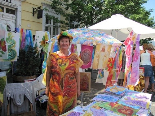 A tárgyak mellett a lelkünket is ápolhattuk, hiszen Csizmadia Klára ezoterikus selyemfestő az életutunknak megfelelő képet, sálat vagy szárit ajánlgatott. A képeket nézve könnyen meditatív állapotba kerülhettünk, megkaphattuk aznapi üzenetünket.