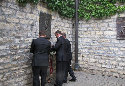 Latinovits Zoltán emlékére a tárlat megnyitója után Oberfrank Pál színházigazgató, Porga Gyula polgármester és Kovács Norbert, a Veszprém Megyei Közgyűlés alelnöke koszorút helyeztek el a „színészkirály” emlékművénél.