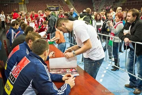 A lefújás után ingyen sörrel és dedikálási lehetőséggel kedveskedett a klub a szurkolóknak.