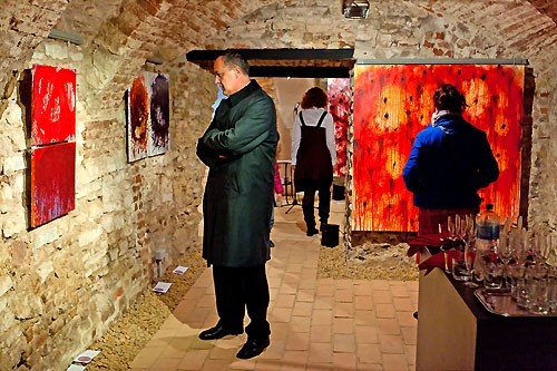 Nemes Z. Máriónak igaza van; a diszharmóniát sugalló festmények olyanok, mintha a felbontott és lélektől megfosztott vérző szív nyers valóságát tárnák a nézők elé. Vörös, vörös, vörös; bordó, kék; megfolyt festék; fekete pontok; körök, ellipszisek – valami dermesztő kilátástalanság, valami jéghideg és egyben forró kutatás és keresés. Kutatás, matatás a mélyben, a húsban, a tudat és a lélek alatt – és a konvencionálison túl.
