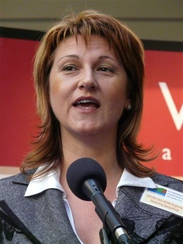 Szűcs Irén marketingigazgató a vendég régió képviseletében szólt a kiállítókhoz és az érdeklődőkhöz, felhívva figyelmüket Békés megye gasztronómiai hungarikumaira, melyekkel az épület előtti sátorban ismerkedhet a nagyközönség a börze ideje alatt.