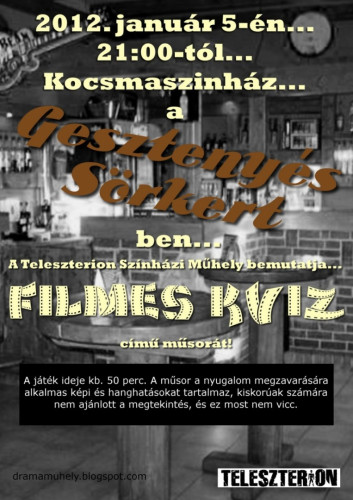 A kocsmák "színpadán" egymásba folyó filmjelenetek elevenednek meg, melyeknek címét nem árulják el a játszók. Így az előadás egyben játék is, a nyertes jutalma pedig általában egy pohár sör és egy oklevél, mely igazolja jártasságát a filmművészetben. Az előadás megtekintése 16 éven aluliaknak nem ajánlott.