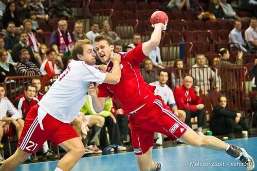 Ezt követően ismét az északi szomszéd került kétgólos előnybe, a Mocsai-csapat azonban tovább fokozta a tempót és félidő derekánál a vezetést is megszerezte az Iváncsik-fivérek főszereplésével (15. perc: 8:7). A vendégek kiváló adottságú átlövője, Rabek ekkor még egyenlíteni tudott, ám a magyarok válaszként 4:0-s szériát produkáltak (19. perc: 12:8). A játékrész hajrájában Harsányi, Nagy Kornél és Putics is Krivokapics is lehetőséget kapott, a különbség azonban nem változott jelentősen, a felek 17:14-es állásnál mehettek szünetre.