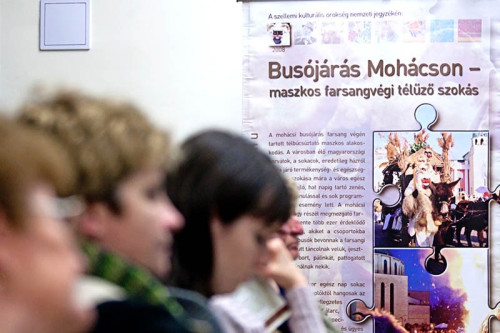 Dr. Csonka-Takács Eszter, a Szellemi Kulturális Örökség Igazgatóság vezetője előadásában minden lényeges részletet érintett. Az UNESCO 2003-ban fogadta el a szellemi kulturális örökség megőrzéséről szóló egyezményt, amelynek Magyarország is tagja lett. A nemzeti jegyzéken szereplő örökség-elemek közül választják ki azokat, amelyeket Magyarország az UNESCO reprezenatív listájára évente egy alkalommal felterjeszthet. Jelenleg az UNESCO listáján a mohácsi busójárás szerepel. Az egyezmény célkitűzése a szellemi kulturális örökség megőrzése, az identitástudat erősítése, az örökség jelentőségének tudatosítása helyi, nemzeti és nemzetközi szinten.