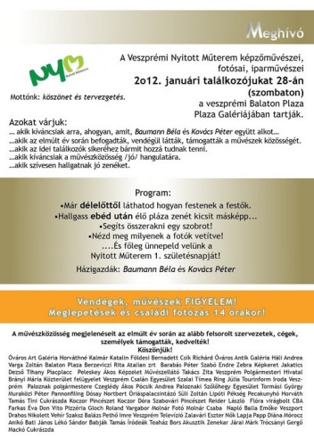 A Veszprémi Nyitott Műterem képzőművészei, fotósai, iparművészei január 28-án találkoznak legközelebb a Balaton Plazában.