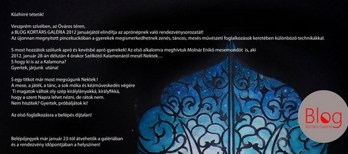A Blog Kortárs Galéria 2012 januárjától elindítja az aprónépnek szóló rendezvénysorozatát. Első alkalommal Molnár Enikő mesél.