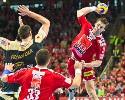 51-60. percig: Parrondo lőtt mellé a jobbszélről, majd Fazekas védett ismét óriási bravúrral. Ötezer ember tombolt állva. Guardiola kapott kétperces büntetést. Vilovski negyedik góljával 23:23 lett. Fazekas lehúzta a rolót, majd Perez verekedte be magát a spanyol védők közöt és megszerezte a vezetést!!! Guardiola kapott piros lapot miután letaglózta a kapu felé igyekvő Iváncsikot. A megítélt büntetőt Vujin váltotta gólra (56. perc: 25:23). Fernandez után Jurkiewicz is belőtte helyzetét, így pillanatok alatt ismét egyenlő lett (25:25). Veszprémi időkérés után Vujin emberelőnyben lőtt kapufát, Perez azonban bevágta kipattanót. Két és fél perccel a vége előtt Markussen egalizált. Egy perccel a lefújás előtt Iváncsik vágta be a ziccert. Terzic kiállt, Parrondo révén ismét egyenlő. A meccs hőse, Vilovski a dudaszó pillanatában bevágta, a végeredmény 28:27. Az MKB Veszprém KC csoport másodikként jutott a legjobb tizenhat köző a sorozatban.