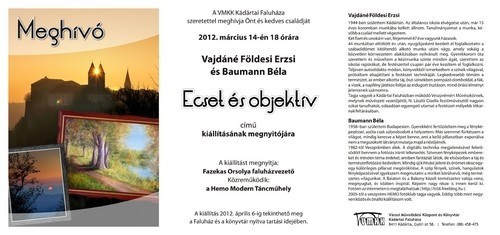 Vajdáné Földesi Erzsi, valamint Baumann Béla közös kiállítása látható Ecset és objektív címmel a kádártai faluházban.