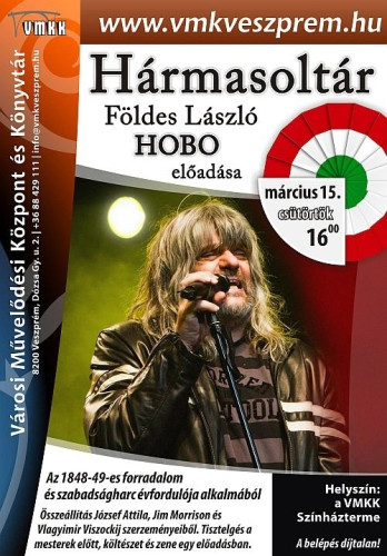 Március 15-én, 16 órakor HOBO (Földes László) Viszockij, József Attila és Jim Morrison szerzeményeiből összeállított műsora látható a VMK-ban.