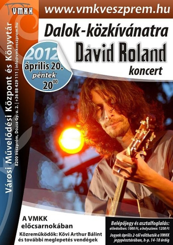 Április 20-án, pénteken 20 órától Dávid Roland „Dalok közkívánatra” című koncertje hallható a VMK-ban.
