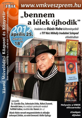 Április 25-én, szerdán 18 órakor Búzás Huba veszprémi költő költeményeiből készült irodalmi estet rendeznek a VMK-ban.