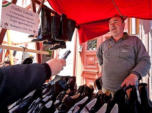 Különleges lábbelikkel is találkozhattak a vásárba látogatók. Szeles László csizmadia mester több mint harminc évtizede végzi munkáját, aminek alapjait még apjától leste el, de azóta folyamatosan fejleszti tudását, a környező országok hagyományos lábbelijeit is tanulmányozza és elkészíti. Az előtte lévő cipők, csizmák kivétel nélkül mind kézzel készültek, előbbi mintegy 10, utóbbi 17-25 munkaórát igényel. Egy díszes darabot is mutat a mester, ennek csak a dísztűzése 4 órán át tartott. Úgy véli, elkényelmesedtünk, a puha cipőket keresik az emberek, az általa előállított termékek pedig keményebbek, azonban jobban is tartják a lábat.