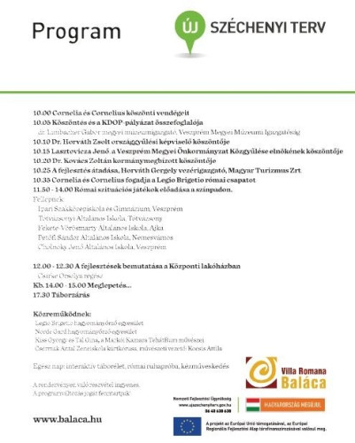 Június 2-án, szombaton 10 órától 17.30-ig színes programok várják az érdeklődőket Villa Romana Balácán.