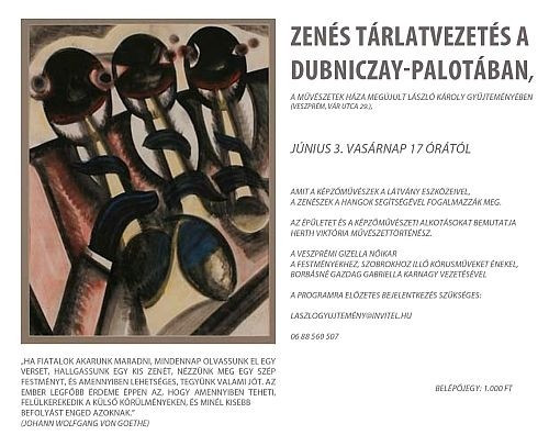 Június 3-án, vasárnap ismét zenés tárlatvezetést tartanak a Dubniczay-palotában.
