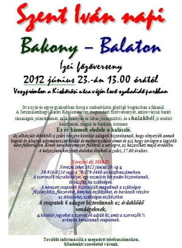 Bakony – Balaton ízei címmel Szent Iván napi főzőversenyt rendeznek június 23-án, szombaton 13 órától a Kiskőrösi utca végén lévő szabadidőparkban.