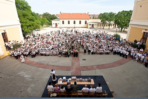 A köszöntő után következett az elismerések, díjak átadása, hiszen a Kossuth iskola diákjai a tanévben mintegy 170 versenyről hoztak eredményt, melyek között országos első helyezést is szép számmal találunk. Az igazgató külön kiemelte a nyolcadik osztályos Nagy Kartal nevét, aki a 3-12. évfolyamosok számára megrendezett Zrínyi-Gordiusz matematikaversenyen egyéniben ötször szerezte meg az országos első helyezést.