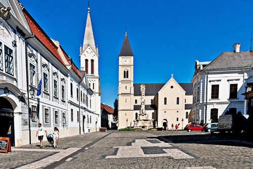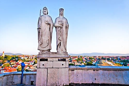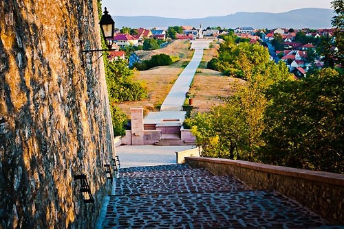 Az utca végén Veszprém szimbóluma, Szent István király, és Gizella királyné szobra áll. Itt megállva ráláthatunk a Benedek-hegyre is. Visszafordulva, a Szent Mihály székesegyházat megkerülve ki is gyalogolhatunk oda. A Benedek-hegyről körülnézve, a gyönyörű kilátást élvezve zárhatjuk a váras sétánkat.