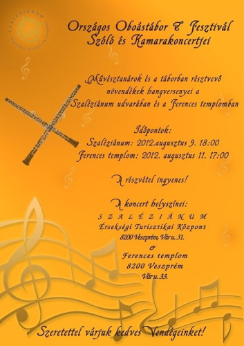 Országos Oboástábor és Fesztivál Szóló és Kamarakoncertjei zajlanak a Szaléziánumban, valamint a Ferences templom a héten.