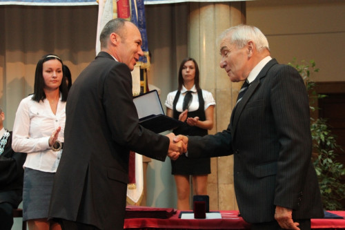 Porga Gyula nyújtja át a Volkra Ottó-díjat dr. Papp Sándornak
