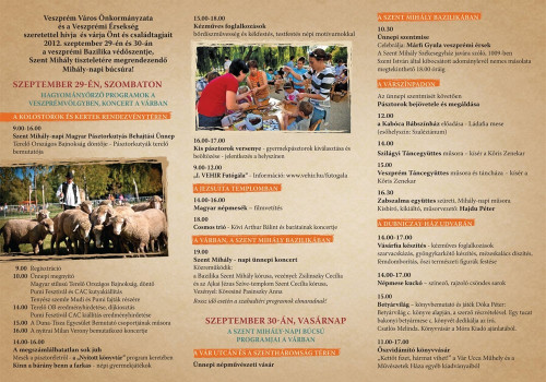 Gazdag programokkal várja a veszprémieket és vendégeit a Szent Mihály napi búcsú az előttünk álló hétvégén. Látványos produkciók, előadások, vásárok szombaton és vasárnap, több helyszínen.