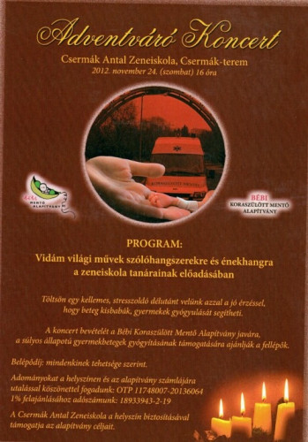 Jótékonysági koncertet rendeznek a Bébi Koraszülött Mentő Alapítvány javára november 24-én a Csermák Antal Zeneiskolában.