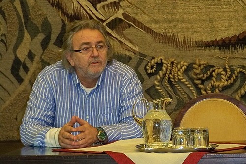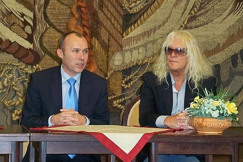 A városháza Kossuth termében Porga Gyula polgármester, Trunkos András az Omega menedzsere és producere, és Kóbor János, a zenekar énekese tartott sajtótájékoztatót csütörtökön.