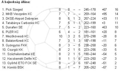 (2), Gelley D. (1), Oláh G. (7/3), Cifra (7/2), Kemény (2), Szöllősi (1).