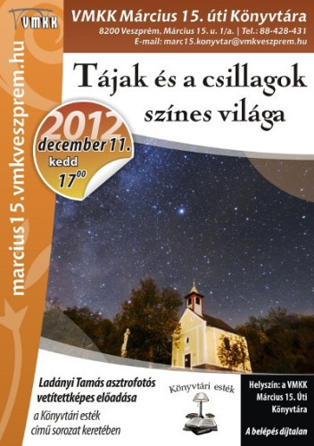 Ladányi Tamás asztrofotós előadásán vehetnek részt az érdeklődők kedden délután 17 órától a Március 15. utcai könyvtárban.