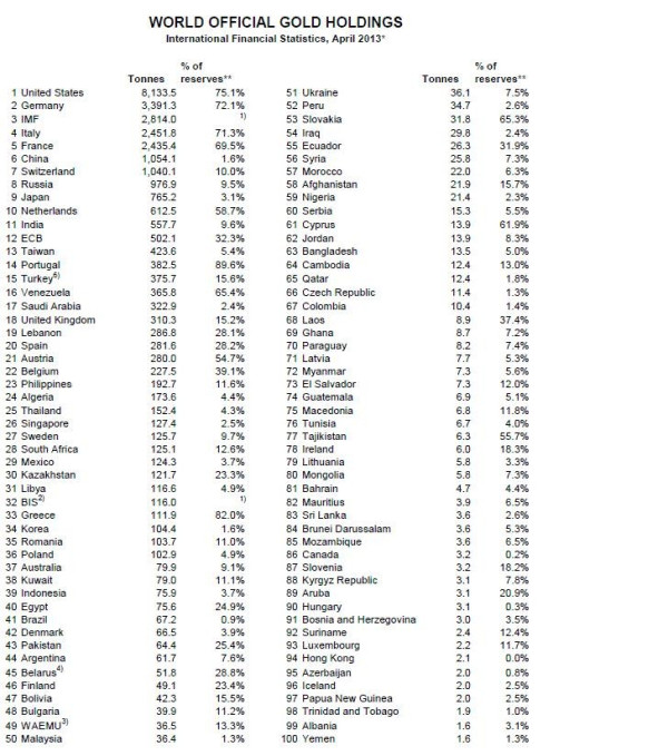 Az elmúlt hetekben a piacok figyelme Ciprusra összpontosult, mivel valószínűleg az ország jelentős mértékben megcsapolhatja az aranytartalékát. Az aggodalmakat miszerint a szigetország értékesítheti aranyának egy részét súlyosbítja, hogy sokkal jelentősebb, bajban lévő országok, mint Olaszország, Portugália és Spanyolország is elkezdheti az aranytartalékaik eladását annak érdekében, hogy tőkét gyűjtsön.