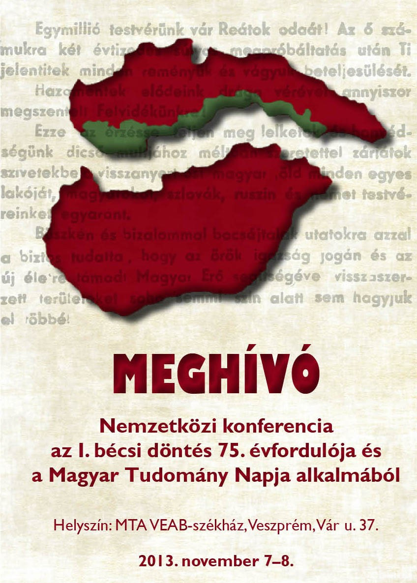 Az I. világháborút követően a trianoni békeszerződés értelmében Magyarország területének mintegy kétharmadát elveszítette, több százezer magyar rekedt az országhatárokon kívül. A magyar kormány a revízió politikáját fogalmazta meg, az igazságtalan paktum újragondolását. Törekvéseiket 1938-ban – noha csak átmenetileg – siker koronázta: november 2-13 között a bécsi döntés által kijelölt 2000 km²-nyi felvidéki területen 860 ezer magyar kerülhetett vissza az országhoz. Összesen mintegy 70 ezer magyar maradt a Felvidéknek vissza nem csatolt területén, ami arányaiban elég igazságos, az etnikai szempontokat figyelembe vevő döntés volt az olasz és a német külügyminiszter részéről. Persze még így is többen várták, hogy befogadja őket az ország, de az akkori körülmények ezt sajnos nem tették lehetővé – mondta el Dr. Limbacher Gábor, a Laczkó Dezső Múzeum igazgatója és a konferencia létrehozója.