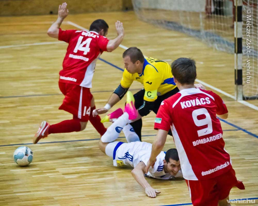 Szépszámú közönség előtt fogadta a negyedik helyezett Veszprém a hatodik Dunakeszit a futsal élvonal hétfői játéknapján. A sérülések miatt tartalékos, ám így is két válogatottat felvonultató vendégalakulat próbálta magához ragadni a kezdeményezést, miközben a Veszprém rendkívül agresszív védekezéssel rukkolt elő. Az első lehetőség a Kinizsi együttese előtt adódott, a Revaland mellett elgurított labdát Bényinek kellett kivágni a kapu torkából.