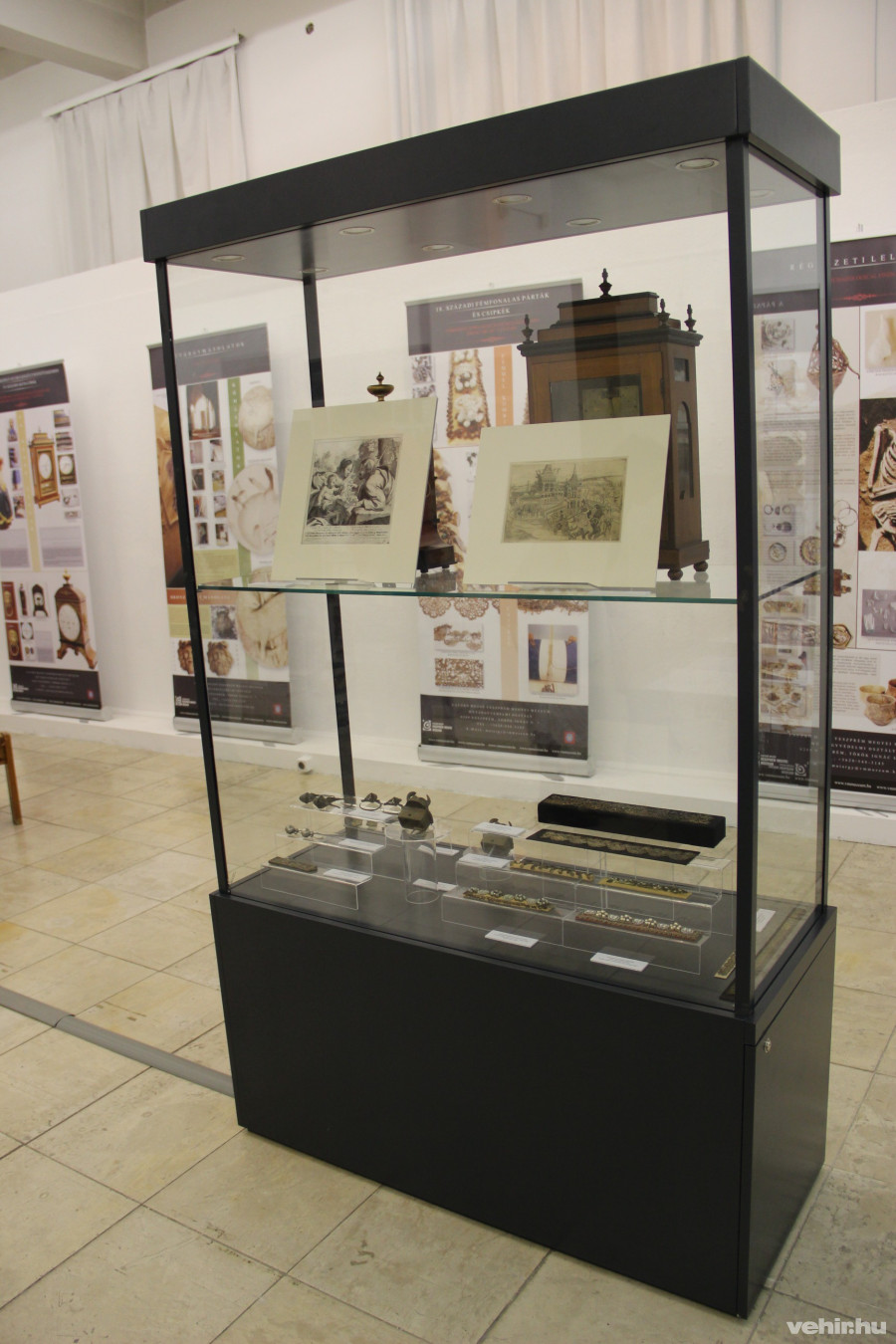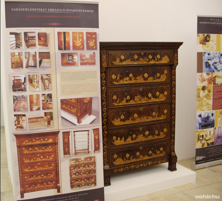 Belépve a terembe molinókat láthat a közönség – a sérült, szennyezett, földből előkerült, korrodált tárgyak fotóival és rövid (angol-, magyar nyelvű) leírásokkal –, melyek részletesebb betekintést nyújtanak a restaurátorok világába és abba, miképpen konzerválják, restaurálják Veszprém megye közgyűjteményeiben található műtárgyakat. Elolvashatjuk többek között régészeti leletek restaurálásának módszereit, a textilrestaurálás rejtelmeit vagy éppen egy 19. századi herendi porcelán dísztárgynak a történetét. Ezután ezeket a műtárgyakat tisztított, konzervált és restaurált állapotban élőben is megtekinthetik az érdeklődők a vitrinekben, megbizonyosodva róla, milyen bámulatos munkát képesek elvégezni sokszor a restaurátorok. A közönség betekintést nyerhet abba is, hogyan, milyen technikával készülnek el ezeknek a műtárgyaknak a másolatai.