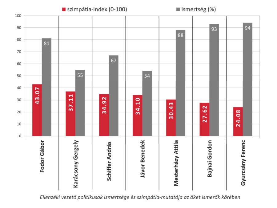 A baloldali ellenzék legnépszerűbb politikusa Fodor Gábor, a Magyar Liberális Párt elnöke, akit az összes megkérdezett 81 százaléka (az őt ismerők) átlagosan 43,07-es népszerűséggel értékelt - írja honlapján a Nézőpont Intézet. A ranglista következő három helyét Karácsony Gergely, Schiffer András és Jávor Benedek foglalja el 54-67 százalékos ismertséggel, valamint 34,10-37,11-es szimpátiára vonatkozó mutatóval. A legkevésbé népszerű politikus Gyurcsány Ferenc (94 százalékos ismertséggel és 24,08-as index-szel), akit nem sokkal előz meg csupán Bajnai Gordon és Mesterházy Attila.