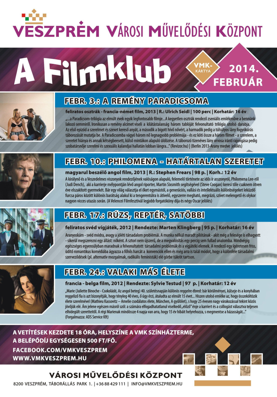 A VMK filmklub februári műsora