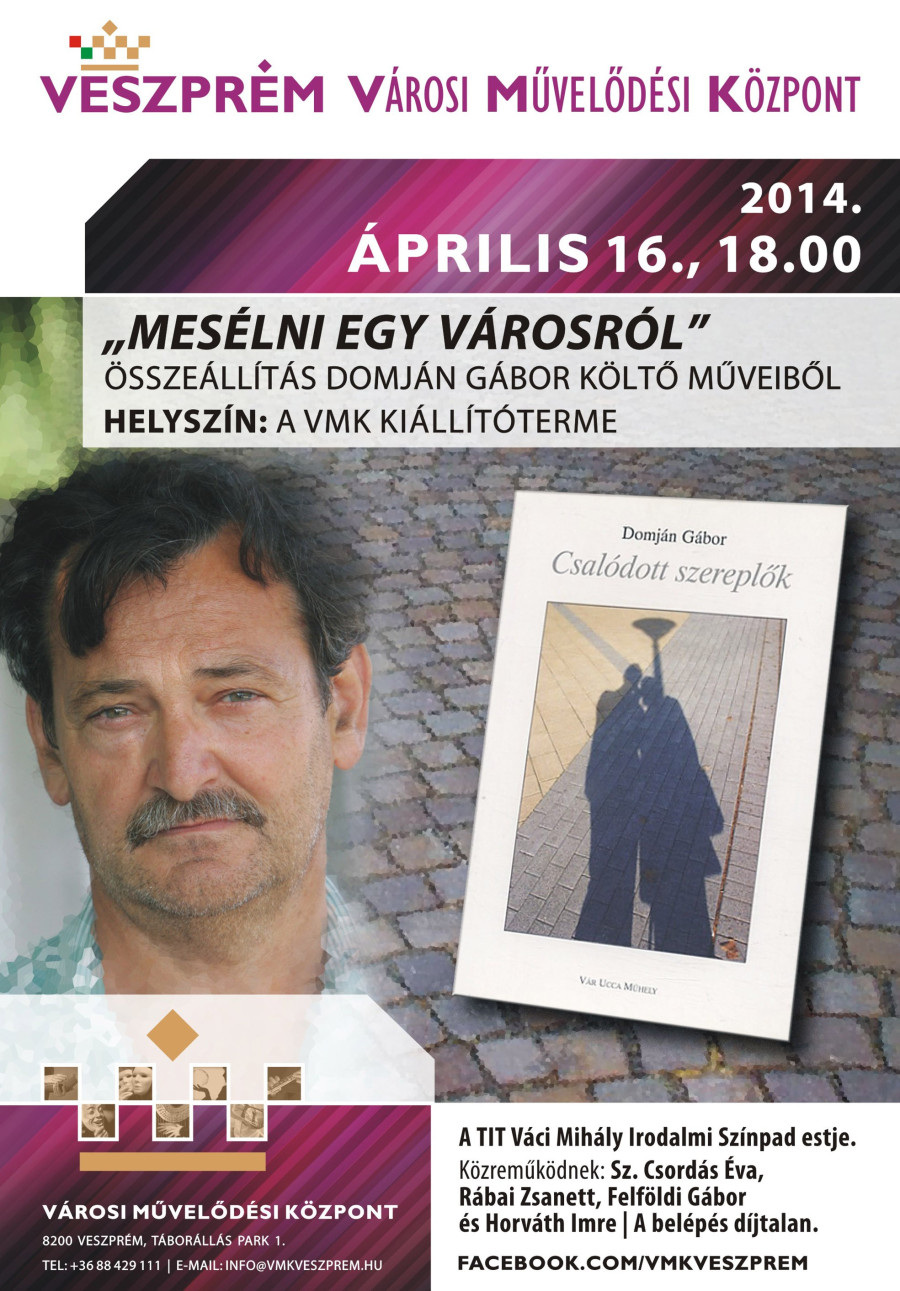 A TIT Váci Mihály Irodalmi Színpad estje Domján Gábor verseiből, április 16-án a VMK-ban
