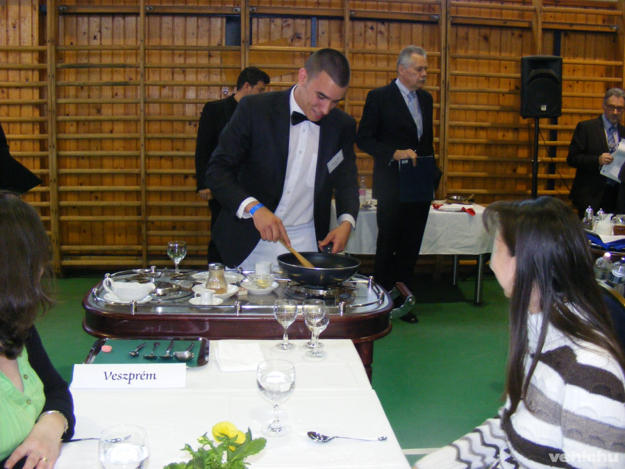 „Magyarországon sokszor rendeznek olyan versenyeket, amelyeken szlovák vagy erdélyi csapatok is indulnak, innentől kezdve pedig könnyedén rájuk sütik a nemzetközi jelzőt, igazi, hasonló szintű megmérettetésen viszont, mint amilyen a Gundel Iskoláé is, vendéglátós vonalon még nem indultunk. A Nemzetközi Ifjúsági Gasztronómiai Versenyre meghívással jutottunk el, egy korábbi eredményünk alapján. Februárban Felcsúton versenyeztünk pincér és szakács kategóriában, Hege Diánával és Horváth Szabinával, valamint a szakács lányokkal, ahol farsangi asztalt kellett elkészíteniük és végül ezüst érmet vihettek haza. Ott ismerkedtem meg az iskola igazgatójával, Kóbor Zoltánnal, akivel nagyon jó kapcsolatba kerültünk és tulajdonképpen az ő ajánlására jutottunk be a nemzetközi versenybe, amin úgy néz ki, már jövőre is helyünk van. Ez azért is külön öröm, mert eddig csak budapesti iskolák szerepeltek a versenyen, mi vagyunk az első vidéki iskola, aki részt vehetett rajta. Ugyanakkor minden egyes versenyeredménnyel megelőlegeztük egy kicsit a szerencsénket. Idén ez már az ötödik megmérettetésünk volt, korábban voltunk Siófokon a Krúdy Gyula Emlékversenyen, Budapesten a Culinary Expón, a Dobos C. Iskola versenyén, Felcsúton s azt követően a nemzetközi versenyen” – avatott be.