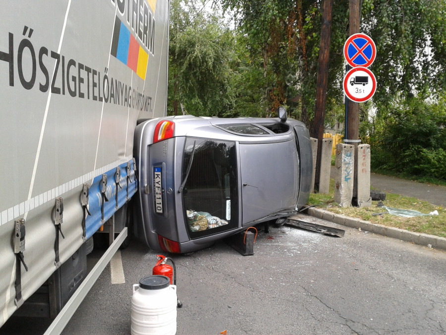 Az ütközés következtében az egyik személyautó az oldalára borult, a tehergépjármű pedig egy villanyoszlopnak ütközött. A felborult gépjárműben két felnőtt, a másik autóban pedig egy gyermek könnyű sérülést szenvedett. A balesethez a veszprémi tűzoltók vonultak egy gépjárműfecskendővel és egy műszaki mentő gépjárművel, akik a járművek áramtalanítását elvégezték. Jelenleg teljes útzár mellett folyik a műszaki mentés.