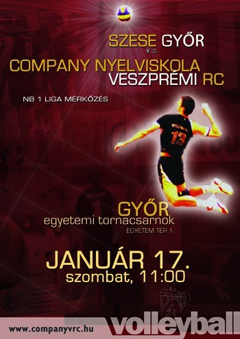 A SZESE Győr vendégeként folytatja az NB I. Liga küzdelmeit a Company Nyelviskola VRC január 17-én. A gyermekcsapat egy nappal később Kaposváron vendégszerepel.