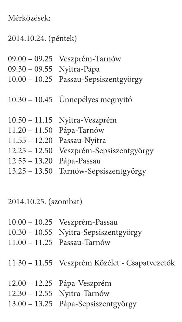 A kupa résztvevői október 23-án érkeznek, majd a következő két napon mérkőznek meg egymással a Március 15. úti Sportcsarnokban, az ünnepélyes megnyitót pénteken 10.30 órakor tartják.