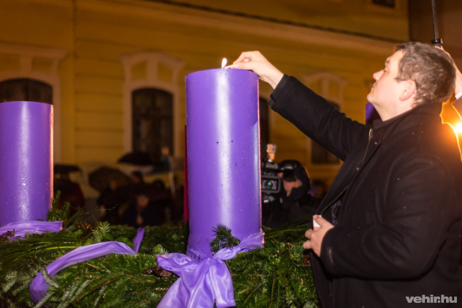 A Szentháromság téren Felker Zsolt, a Szent Mihály Bazilika káplánja osztotta meg adventi gondolatait, kiemelve a többi ember, a rászorulók és bajbajutottak megsegítését.