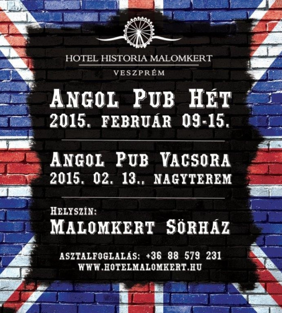 Február 9-15-ig a Malomkertben az angol pubok világa elevenedik meg a hagyományos pub ételekkel angol sörök kíséretében. Asztalfoglalás: +36 88 579 231