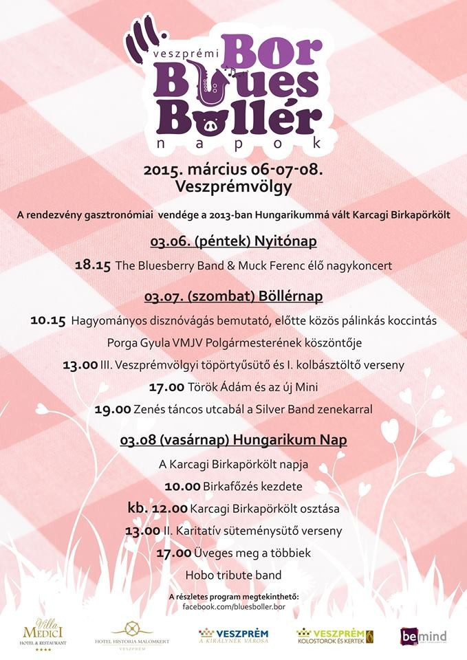 Szombaton délelőtt a rendezvény megnyitóján Szegedi Pál főszervező elmondta, hogy három évvel ezelőtt azzal a nem titkolt céllal indult el a Bor-Blues-Böllér Napok, hogy bemutassa Veszprém városának és az országnak azokat a gasztronómiai értékeket, amikre méltán lehetünk büszkék. Idén a fesztivál gasztronómiai díszvendége a két évvel ezelőtt hungarikummá nyilvánított karcagi birkapörkölt.