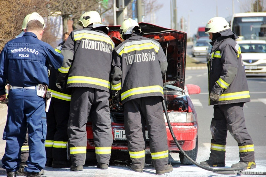 Kigyulladt egy autó motortere a Budapest úton a Szakszervezetek házánál szerda délben. A helyszínre egy fecskendővel vonultak a tűzoltók, akik gyorsan el is oltották a lángokat - tudtuk meg Csépányi- Barczi Petrától, a Megyei Katasztrófavédelmi Igazgatóság szóvivőjétől. Szemtanúk szerint egy fiatalember érkezett a helyszínre egy közeli épületből és poroltóval a szakemberek megérkezése előtt megkezdte az oltást.